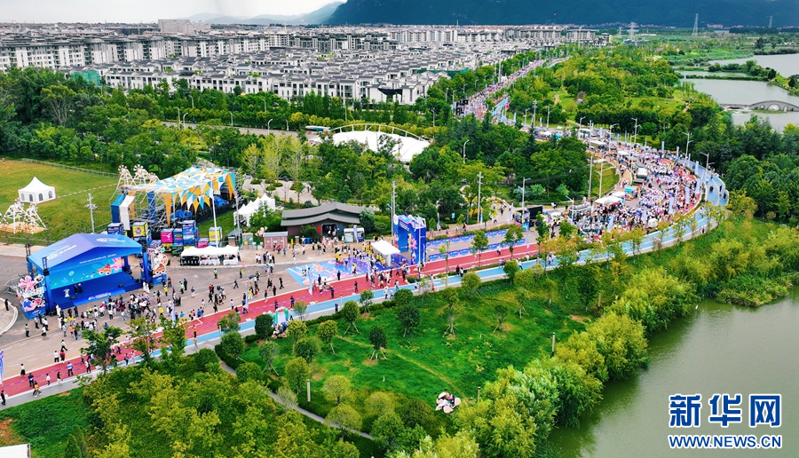 航拍視角下的2024滇池東岸國際咖啡文化嘉年華(攝于8月10日)。