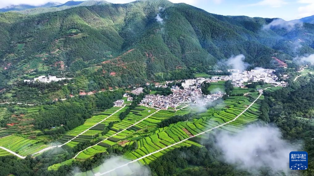 入秋,云南省大理白族自治州賓川縣國家級生態鄉鎮拉烏鄉33萬畝森林蒼翠欲滴,云霧在群山之間繚繞,仿佛人間仙境。萬畝良田在雨水的滋養下生機盎然,藍天、碧水與翠巒交織在一起,構成了一幅生機勃勃的生態畫卷。