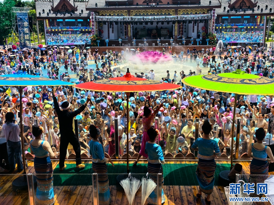 熱鬧非凡的西雙版納傣族園潑水活動(8月8日攝)。新華網 李寧 攝