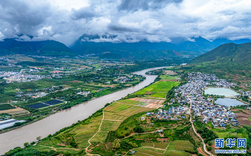 航拍潞江壩山水田園風光(8月10日攝)。新華網發(曾三東 攝)