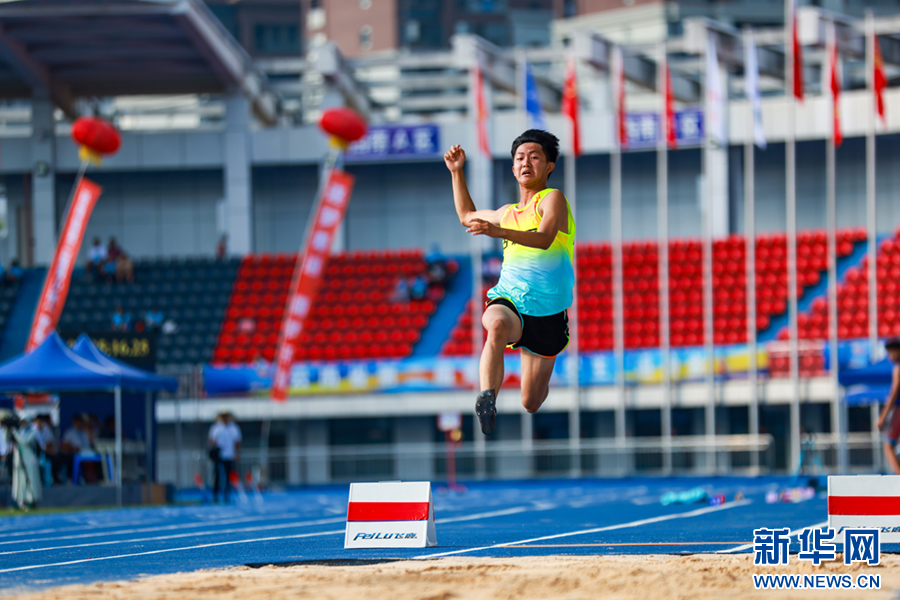 8月14日,田徑項目比賽中,參賽選手正在跳遠。新華網發(陶家淇 攝)