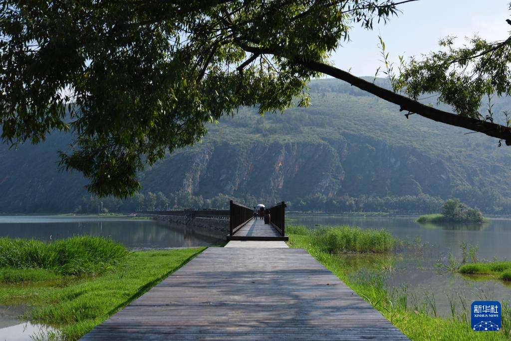 這是8月21日拍攝的茈碧湖畔的生態廊道。新華社記者 劉思遠 攝