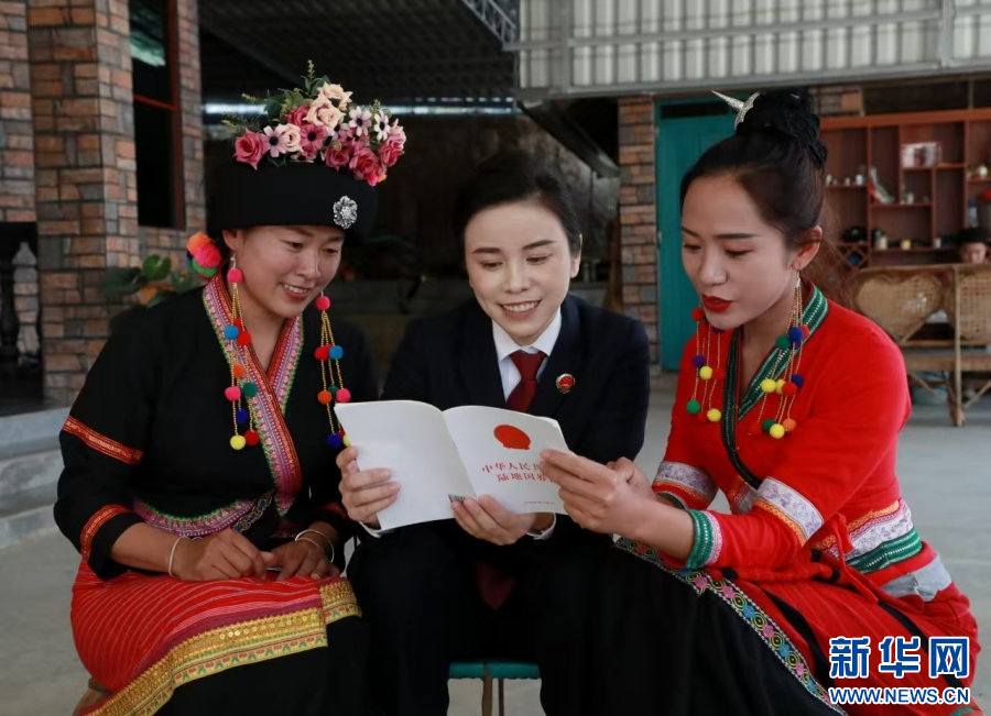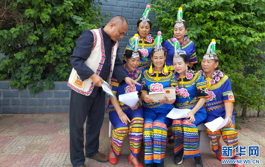 玉喃溜在給群眾做普法宣傳(資料圖)。新華網發(供圖)