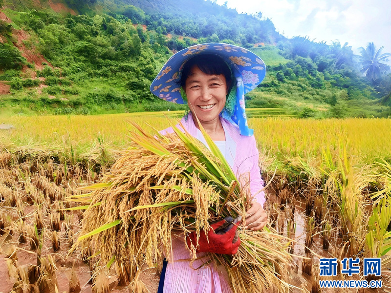 稻谷豐收,村民喜笑顏開 (8月22日攝).新華網發(墨江縣融媒體中心供圖)