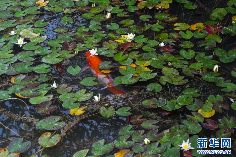 在洱源縣一處農家小池里拍攝到的茈碧花(攝于8月21日)。新華網發(羅新才 攝)