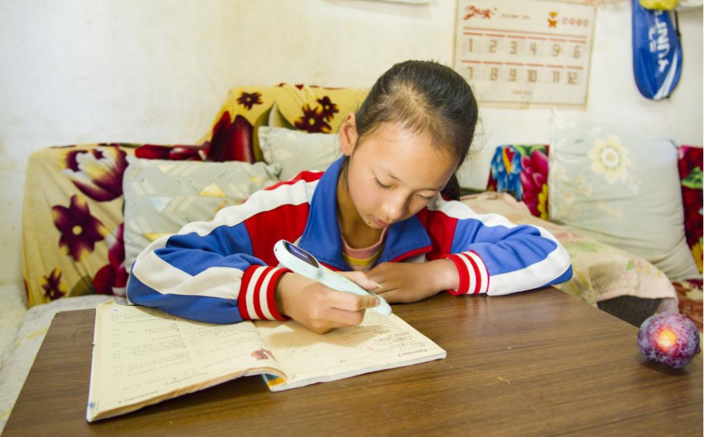 走進住戶陳燕的家里,上五年級的大女兒李靖正在復習英語,通過點讀筆掃描單詞可以輕松地跟讀。她和丈夫都在外打工,家里只有老人帶著兩個孩子,這種情況在安置區很普遍。為此,魯甸移動依托點讀筆和“小小探頭進萬家”等產品和項目,助力政府解決“一老一小”問題。陳燕說,“家里安了智能攝像頭,基本上每天晚上都可以看著他們寫作業,也能安心些?!睘榭s小地區間的教育差距,李靖就讀的卯家灣九年一貫制學校接入了國家中小學智慧教育平臺,魯甸移動同步提供的教育專網實現100兆帶寬入班。