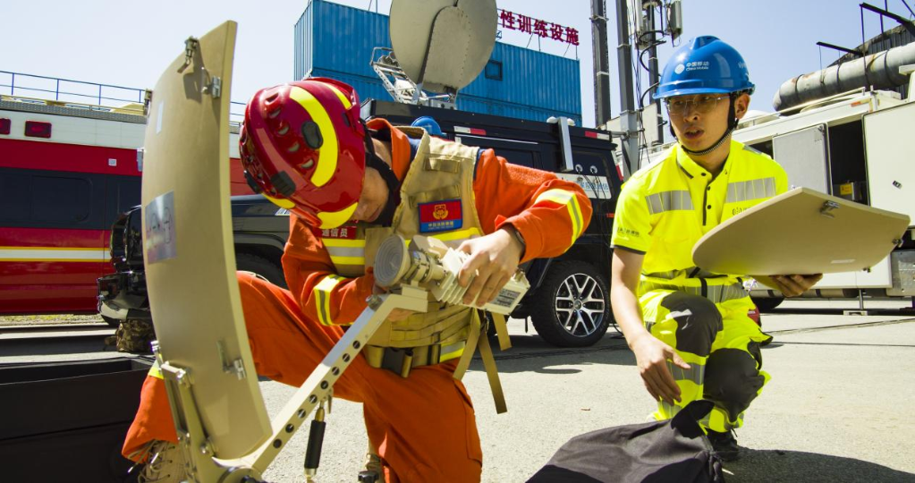 無人機可對山體滑坡等災害現場進行圖像傳輸和三維建模,輔助決策;衛星通信車開到指定位置后,2名救援人員可以在5分鐘內搭建設備并實現傳輸功能;在車輛無法通行的區域,救援人員可以背負衛星便攜站,實現單兵部署、快速搶通……