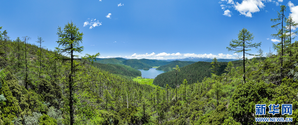 森林與遠處的碧塔海(7月31日攝)。新華網發 劉東 攝