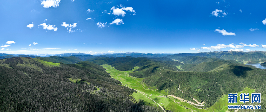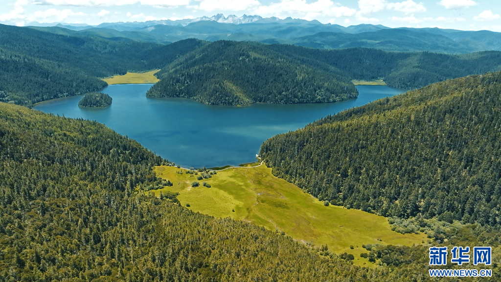 航拍普達措景區(7月31日攝)。新華網發 劉東 攝