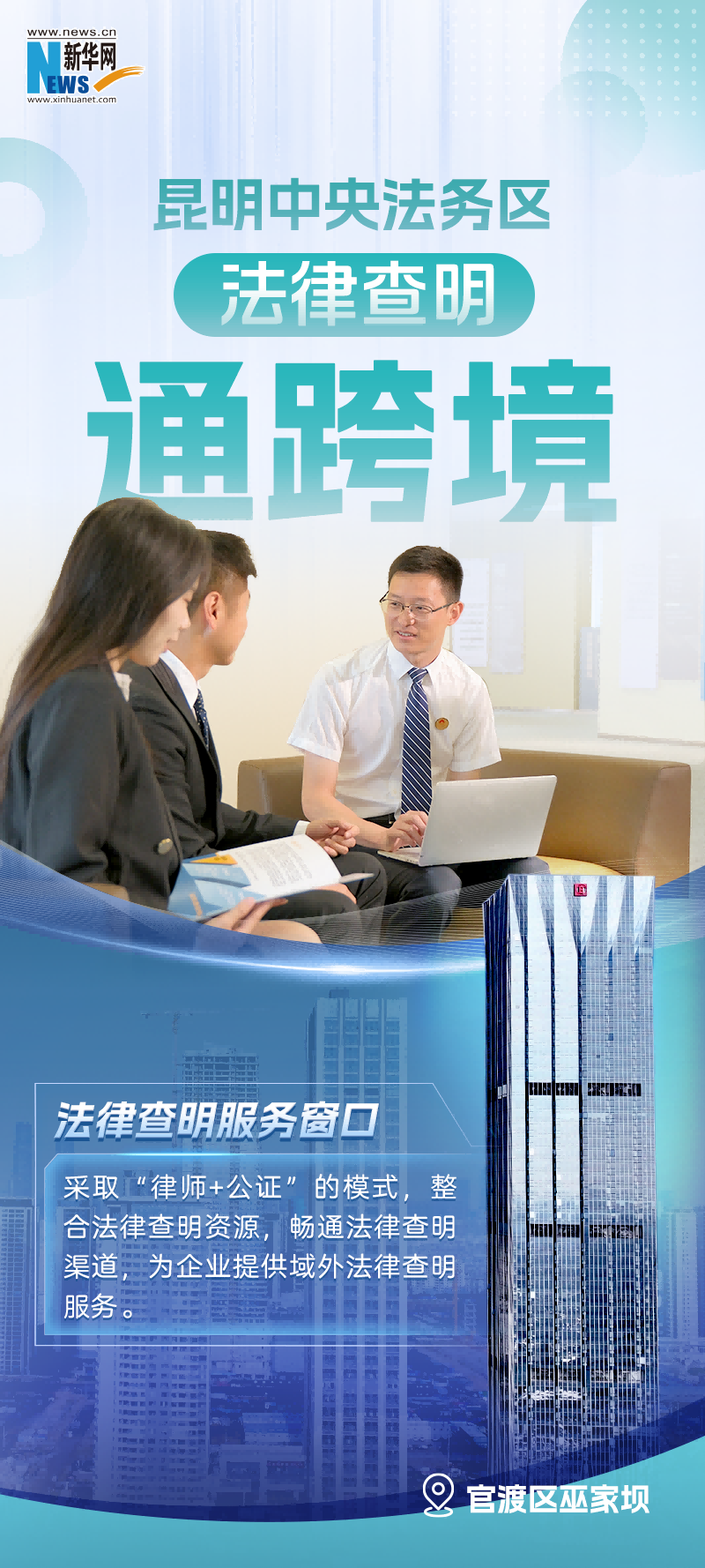 根據昆明中央法務區建設市級領導小組辦公室2024年3月印發的《推進昆明中央法務區建設第一批功能落地工作方案》,法律查明服務窗口采取“律師+公證”的模式,建設昆明市南亞東南亞法律查明和國際商事調解中心,整合法律查明資源,暢通法律查明渠道,為企業提供域外法律查明和商事調解服務。
