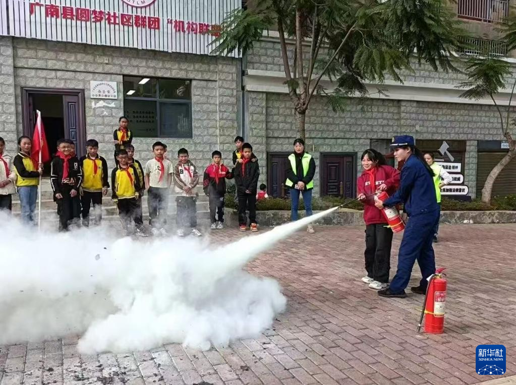 廣南縣蓮城鎮圓夢社區“少年兒童之家”開展消防演練活動。(劉盈秀 攝)
