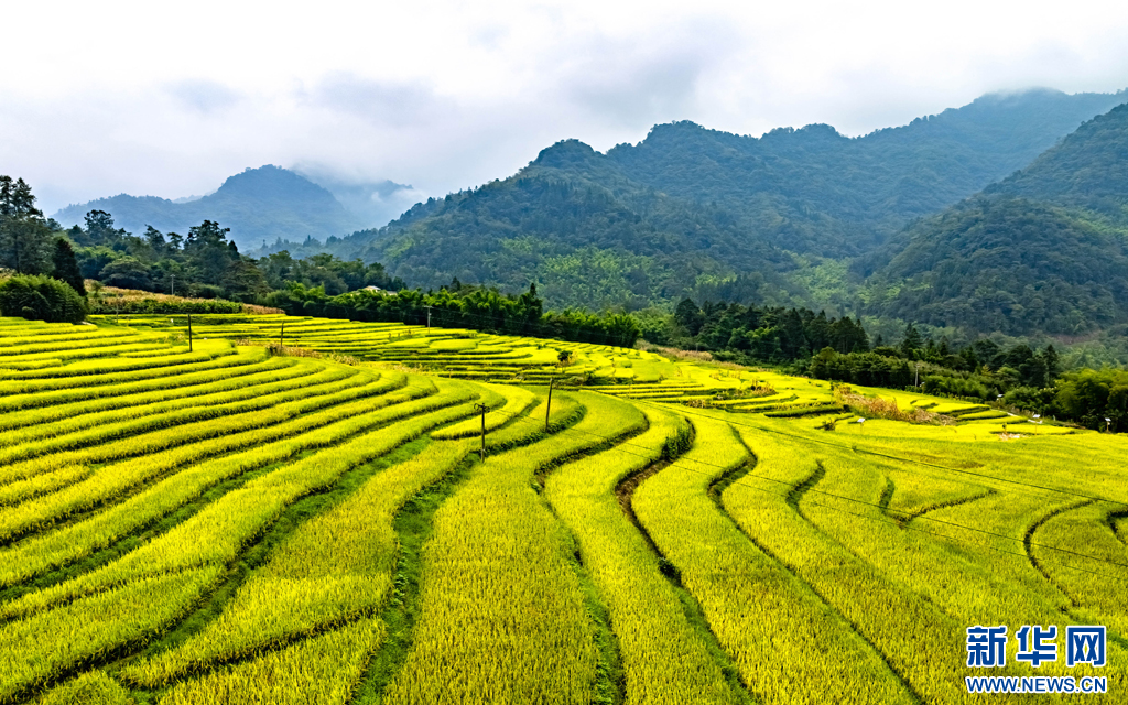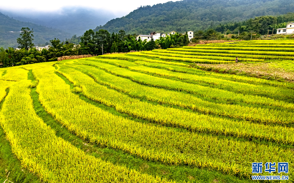 層次分明的高山梯田水稻(8月31日攝)。新華網發(曾三東 攝)