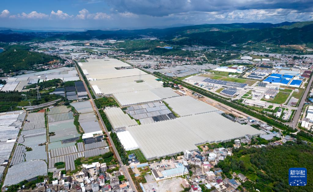 這是8月23日拍攝的云南晉寧花卉產業現代化示范園(無人機照片)。新華社記者 陳欣波 攝