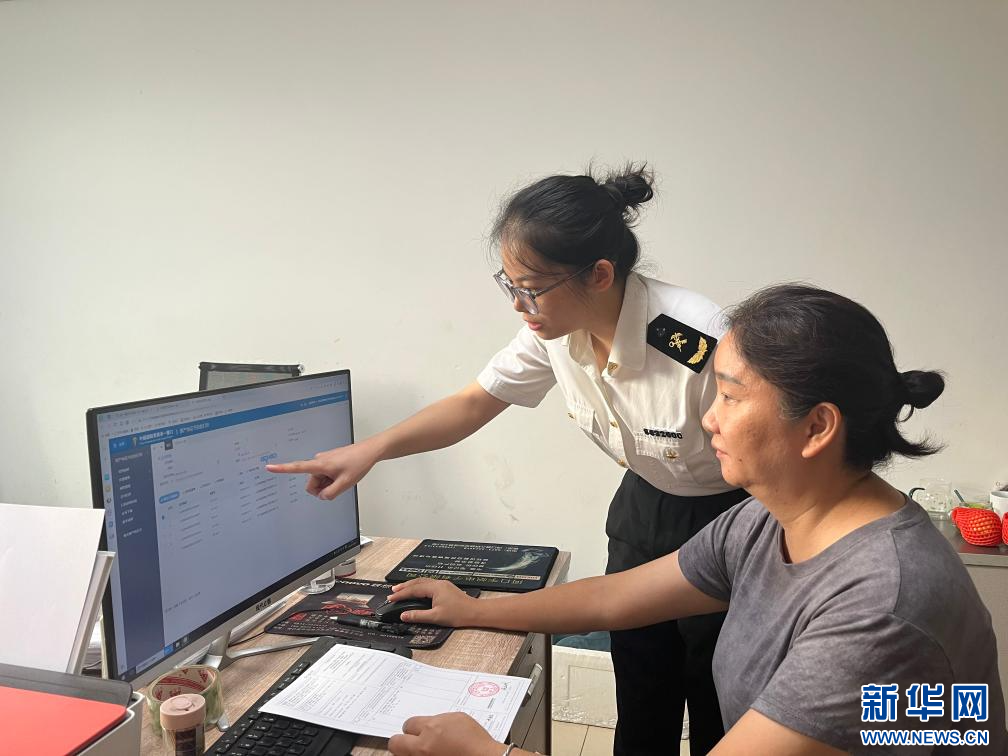 河口海關關員指導當地企業完成原產地證書自助打印。(段禮斌 攝)