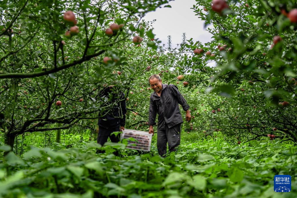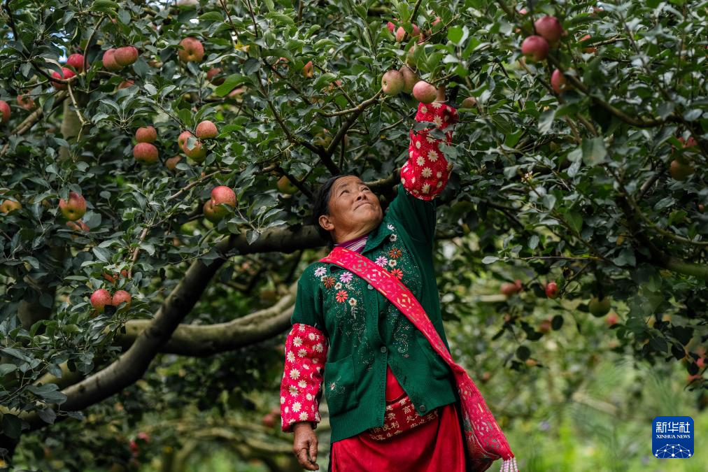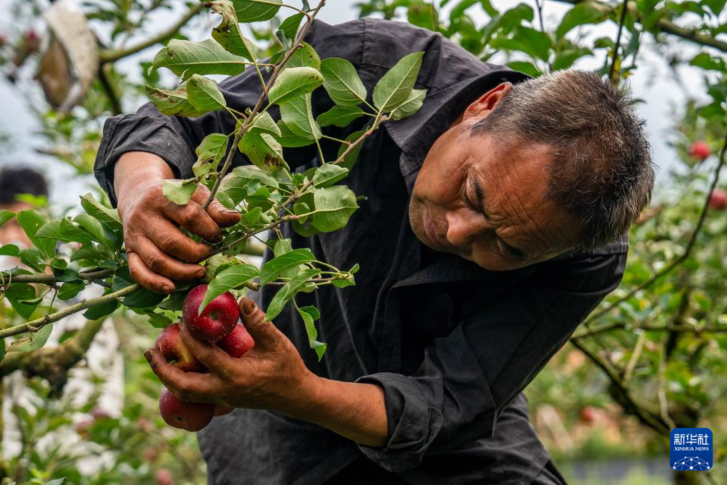 9月3日,云南省紅河州蒙自市西北勒鄉的農戶在采摘蘋果。新華社記者 胡超 攝