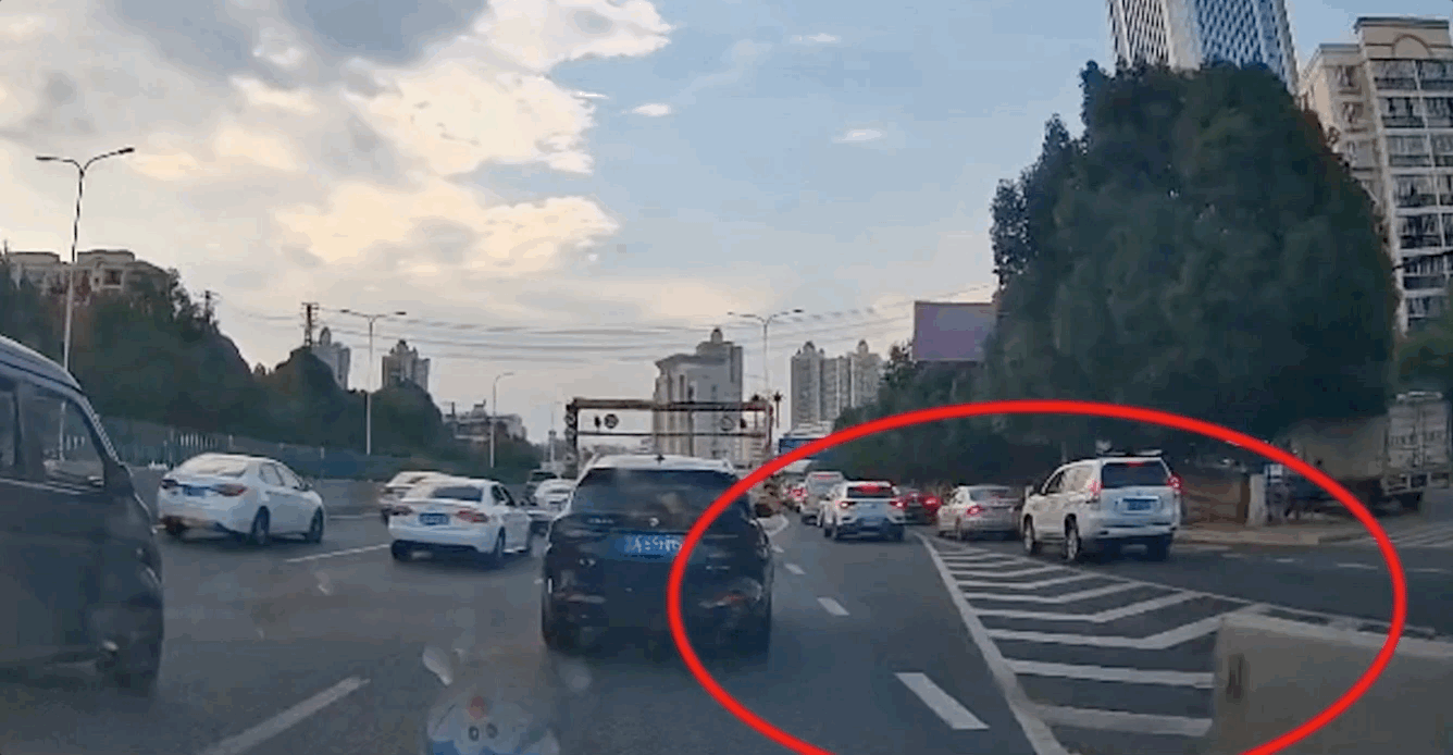執勤交警指引求助車輛駛出左轉道繼續前行。