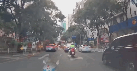 騎警一邊開道,一邊起身尋找最佳通行路線。