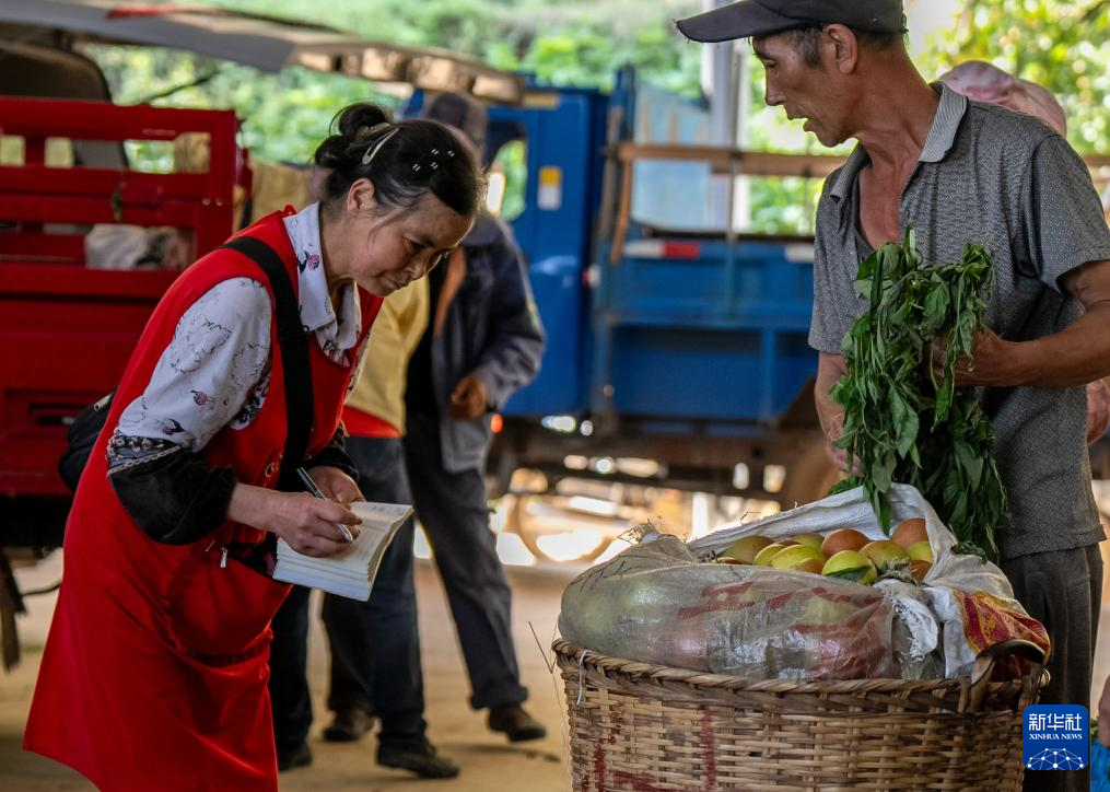 9月5日,紅河州個舊市雞街鎮的果農在售賣魯沙梨。新華社記者 胡超 攝