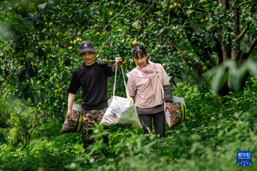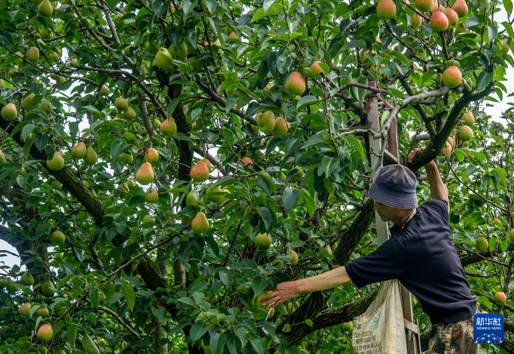 9月5日,紅河州個舊市雞街鎮的果農在采摘魯沙梨。新華社記者 胡超 攝