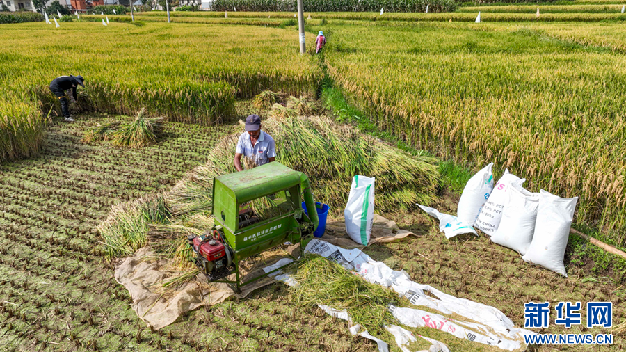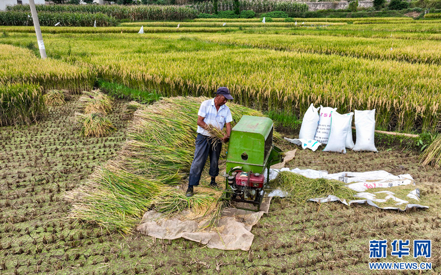 9月4日,云南省曲靖市沾益區天生壩村,村民忙著收割水稻。新華網發(孫文來 攝)