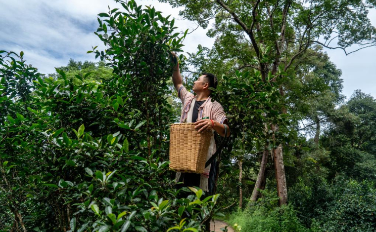 德昂酸茶是德昂族最具特色的茶產品,云南省德宏州芒市的“德昂族酸茶制作技藝”2021年入選第五批國家級非物質文化遺產名錄。眼下,又到了采收秋茶、制作德昂酸茶的時節。在芒市四季茶業有限公司遮放幫解茶葉基地,人們穿梭在茶地里采收茶葉,作為制作德昂酸茶的原料。