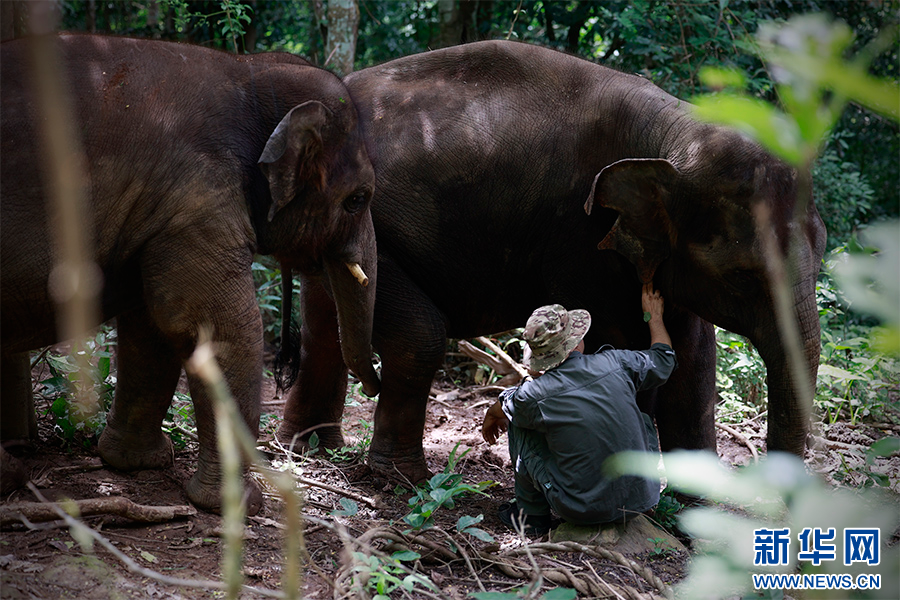 8月1日,陳繼銘和其他象爸爸帶著大象開展野化訓練。新華網發 劉云 攝