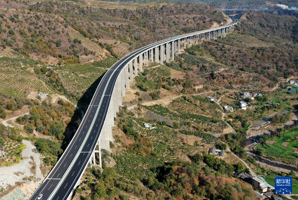 這是建成的云南華麗高速半巖子特大橋(2022年1月1日攝,無人機照片)新華社發(季楚 攝)