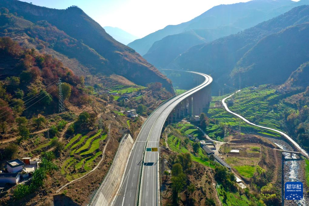 這是建成的云南華麗高速下白特大橋(2022年1月1日攝,無人機照片)。新華社發(季楚 攝)