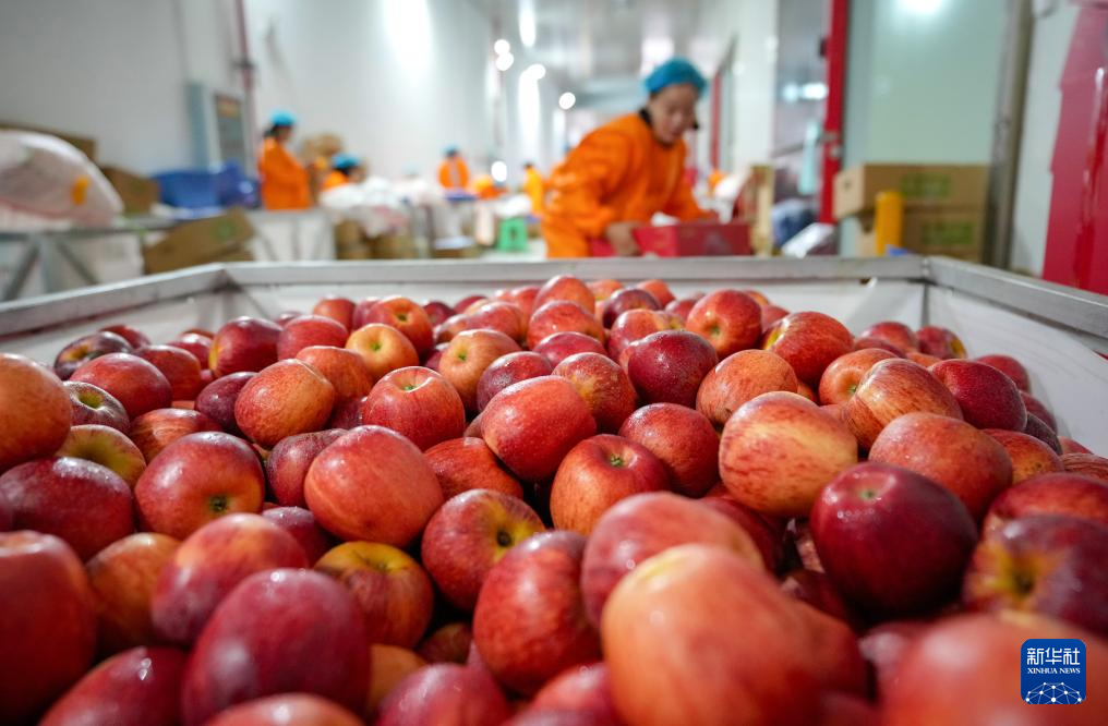 9月29日,工作人員在昭通市超越蘋果基地蘋果包裝車間工作。新華社記者 陳欣波 攝