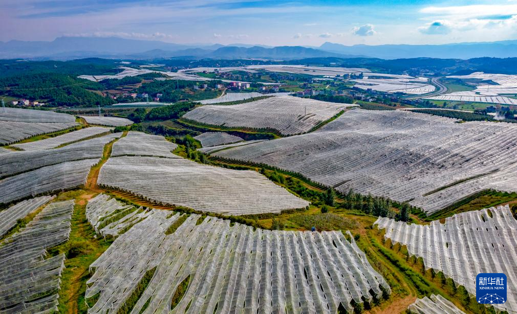 這是9月29日拍攝的昭通市超越蘋果基地一景(無人機照片)。新華社記者 陳欣波 攝