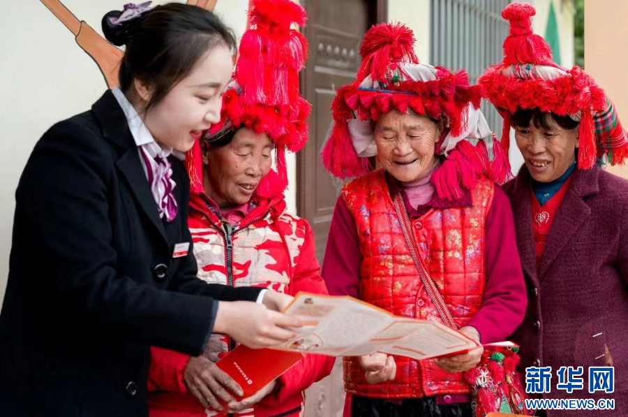 工作人員向老年人宣傳金融知識(資料圖)。新華網發(云南農信社供圖)