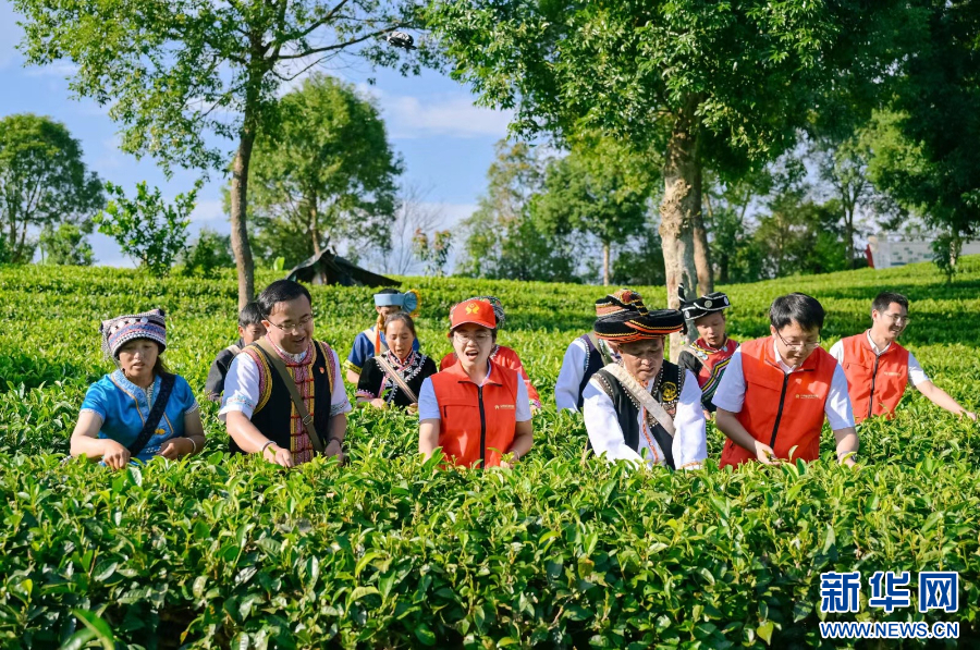 工作人員了解茶葉發展情況(資料圖)。新華網發(云南農信社供圖)