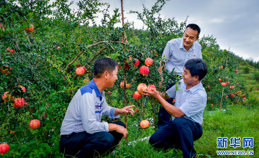 工作人員了解石榴種植情況(資料圖)。新華網發(云南農信社供圖)