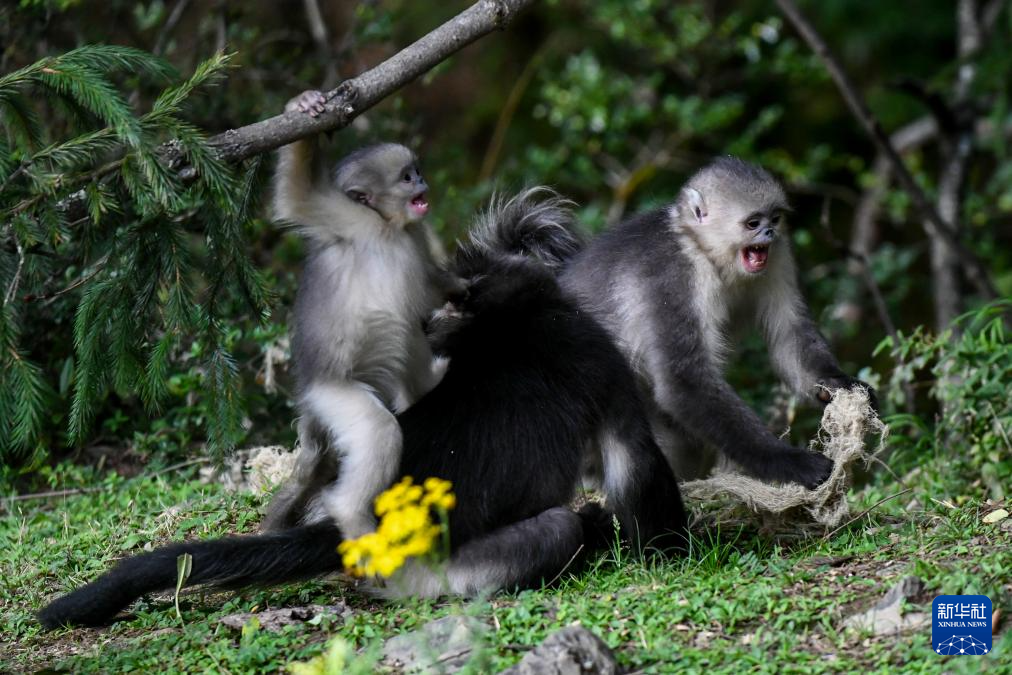 這是9月30日在滇金絲猴國家公園拍攝的滇金絲猴。新華社發(朱敬熹 攝)