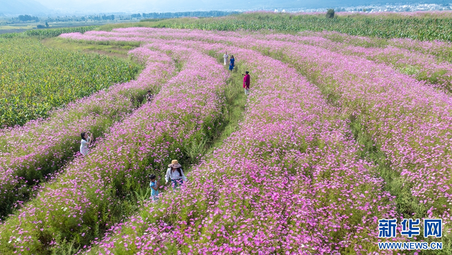 秋日是什么顏色的?你可能會回答,是滿目金黃,是疊翠流金,又或者是萬山紅遍。但在云南省大理白族自治州洱源縣鳳羽鎮,這個答案還可以是粉色!近日,鳳羽鎮成片的波斯菊集中開放,以粉色為主的花朵簇擁搖曳,匯成一片浪漫的花海,美景如畫,為秋日增添了一抹靚麗的粉色,也為市民和游客增加了一個秋日出游好去處。(羅新才 攝影報道)