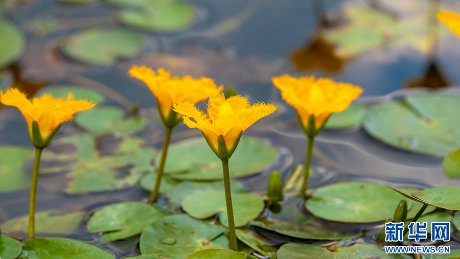 “參差荇菜,左右流之?!比绻阆脲忮祟H具浪漫色彩的水生植物荇菜,那么地處云南洱源縣的茈碧湖,絕對是一個不錯的選擇。秋日的茈碧湖,“一湖碧水半湖荇”,連片的荇菜花開正盛,與藍天、碧水、蘆葦相映成趣,共同構成了一幅動人的生態畫卷。(羅新才 李雪梅 攝影報道)