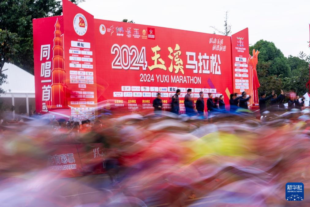 當日,2024玉溪馬拉松在云南省玉溪市紅塔區開賽。本次比賽設馬拉松、半程馬拉松、迷你跑三個項目,吸引了約1萬名選手參加。