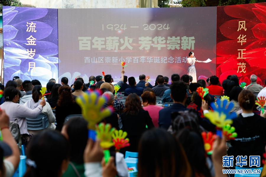 10月24日下午,云南省昆明市西山區崇新小學舉行建校100周年慶?;顒??;顒右浴鞍倌晷交?芳華崇新”為主題,通過學生作品展覽、校史展覽、文藝演出等向學生家長、各界人士展示崇新小學悠久的歷史底蘊和發展的積極成效。