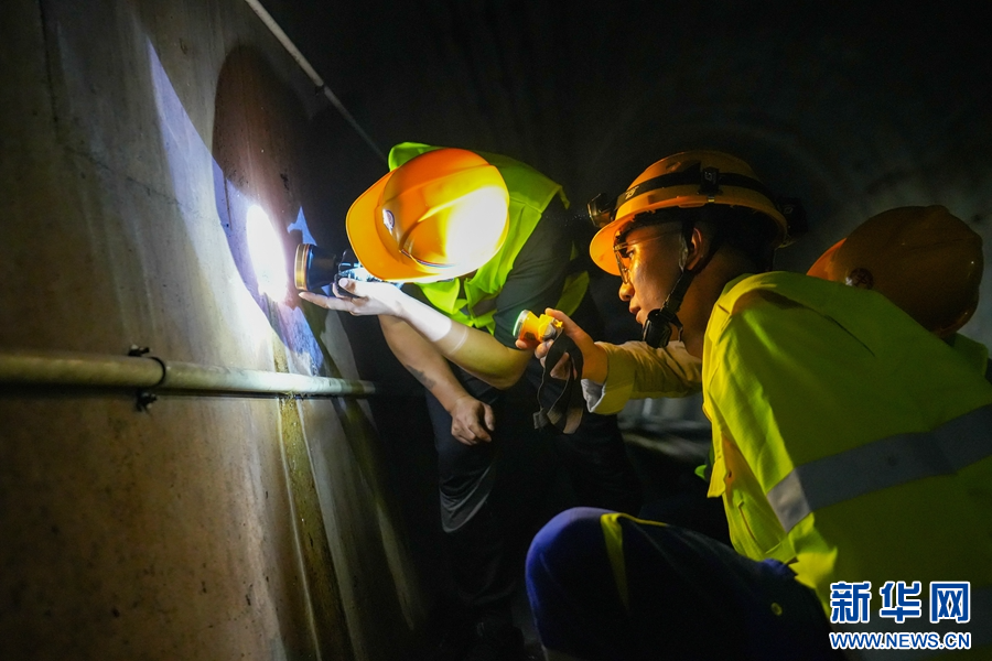 作業人員在隧道里對排水溝進行檢查(攝于10月29日)。新華網發(殷學合 攝)