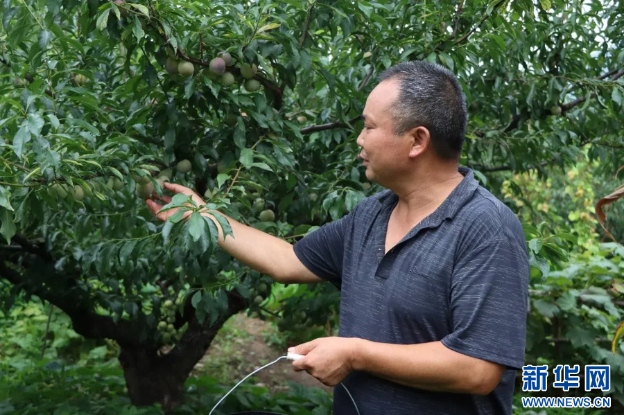 許興武在采摘李子(資料圖)。新華網發(綏江縣委宣傳部 供圖)