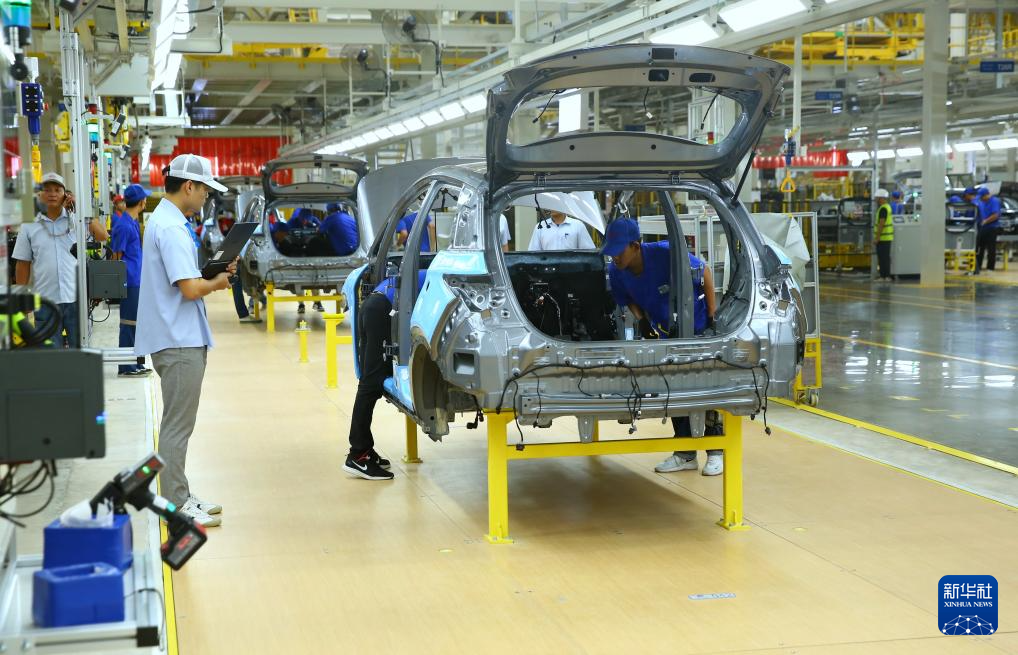 2024年7月4日,工人在位于泰國羅勇府的比亞迪泰國工廠流水線上忙碌。新華社記者 孫瑋彤 攝