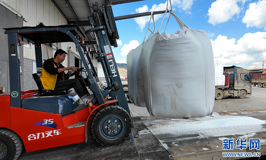 叉車正在運送化肥(11月21日攝)。新華網發 徐華陵 攝