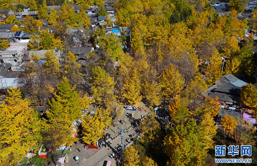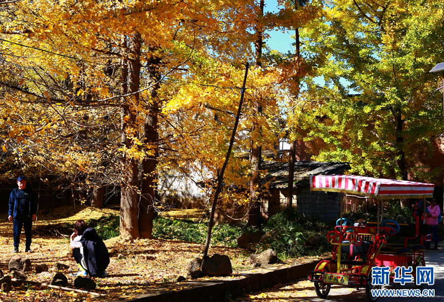 銀杏村吸引游客前來游玩(12月1日攝)。新華網發(趙輝 攝)