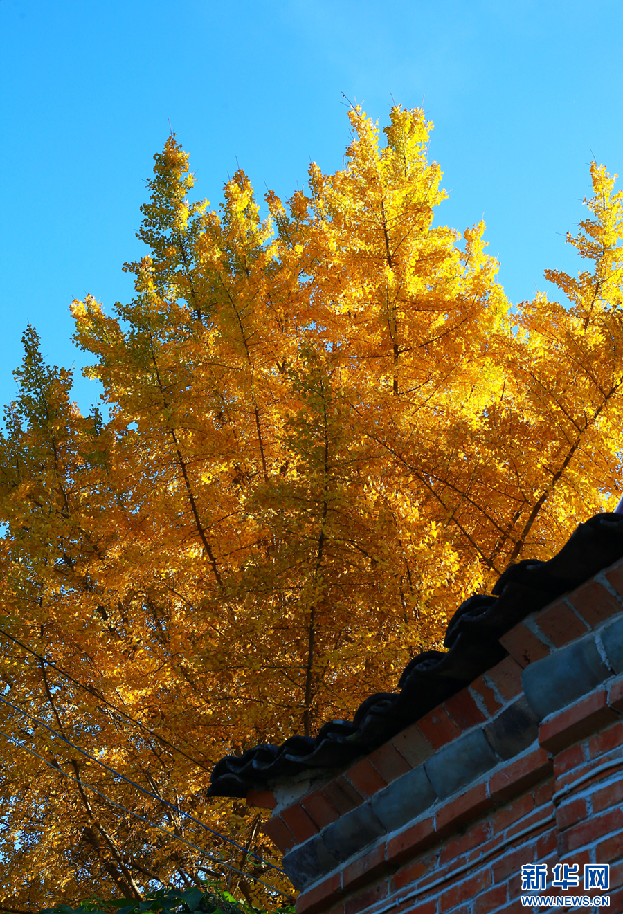 金黃的銀杏樹與藍天相映成趣(12月1日攝)。新華網發(趙輝 攝)