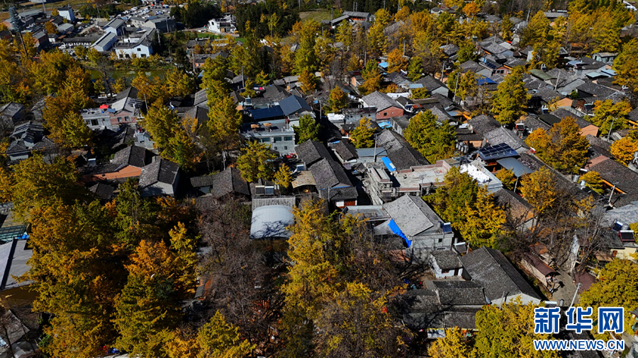 航拍云南省騰沖市固東鎮江東社區“銀杏村”,村在林中、林在村中(12月1日攝)。新華網發(趙輝 攝)