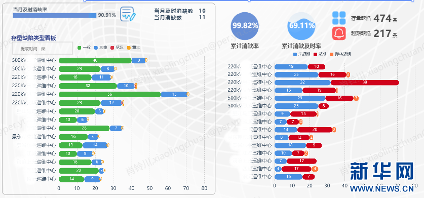 一是“變電指標看板”場景接入并整合了操作票管理、缺陷監控、臺賬動態、生產作業計劃及安全隱患管理等多項關鍵業務數據,管理人員可以迅速通過可視化查詢系統獲取指標情況等關鍵信息,與傳統的消缺狀態統計工作相比,效率提升了70%,直接減少了業務人員每日2小時的報表統計工作?!艾F在每天登錄變電指標看板能夠實時查看變電站設備的消缺進度,解決了數據不及時、消缺工作重復確認的問題,設備消缺工作變得井然有序?!痹O備管理人員肖玲川興奮地說道。