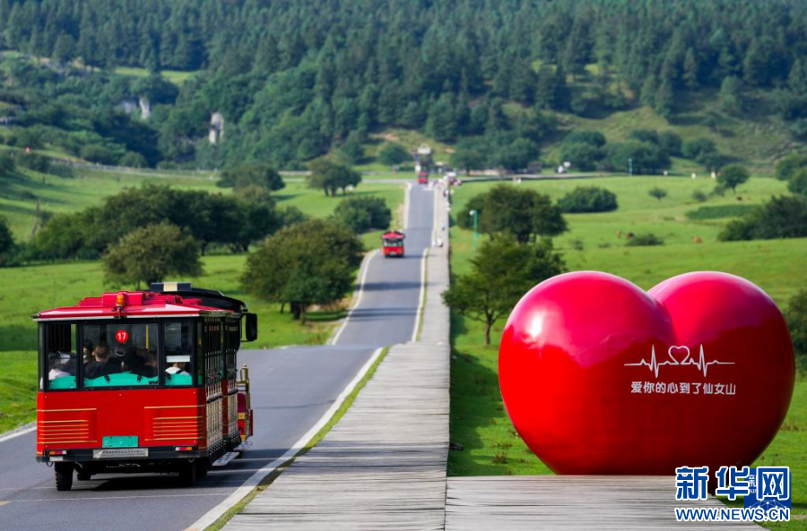 7月22日,旅游小火車載著游客行駛在仙女山國家森林公園。新華社記者 劉潺 攝