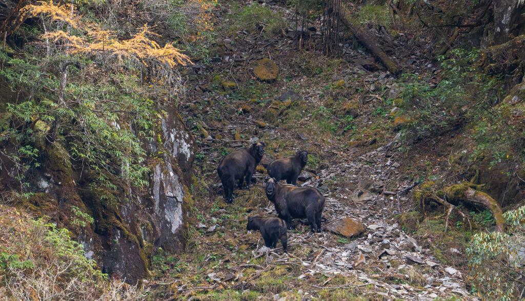 貢山羚牛在我國主要分布于云南省西北部的高黎貢山地區,其棲息地偏遠且活動較為隱蔽。據調查,通過多年的保護,該片區的貢山羚牛種群數量有顯著增長。