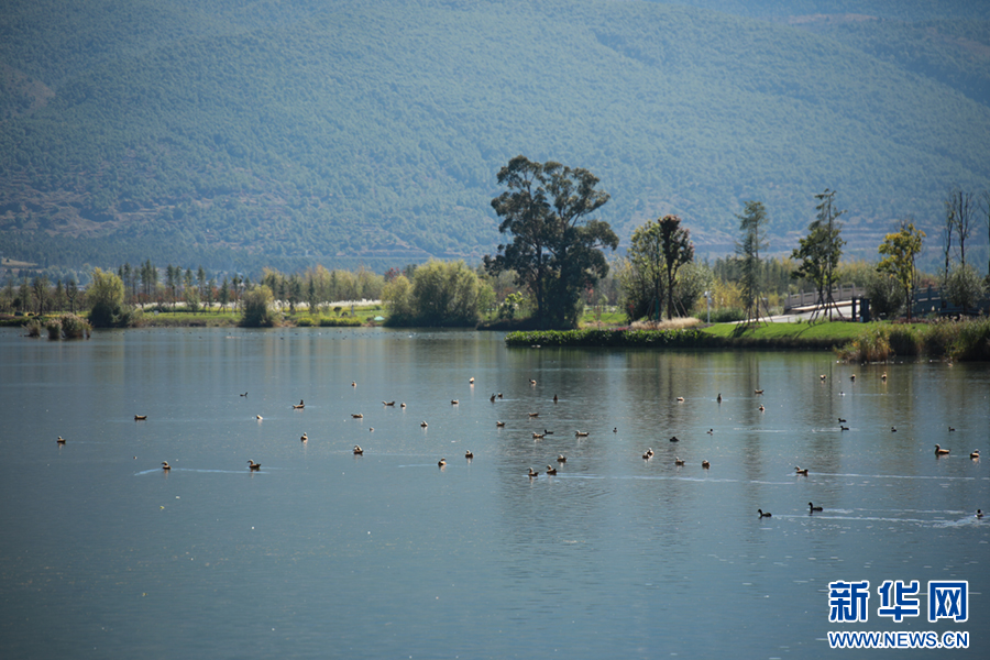 候鳥飛臨云南省大理白族自治州鶴慶縣草海濕地越冬、棲息(12月10日攝)。新華網發(吳金勇 攝)