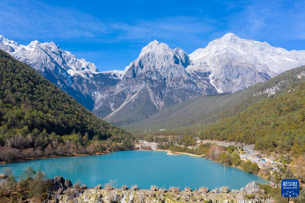 這是12月13日拍攝的麗江市玉龍雪山景區藍月谷風光(無人機照片)。